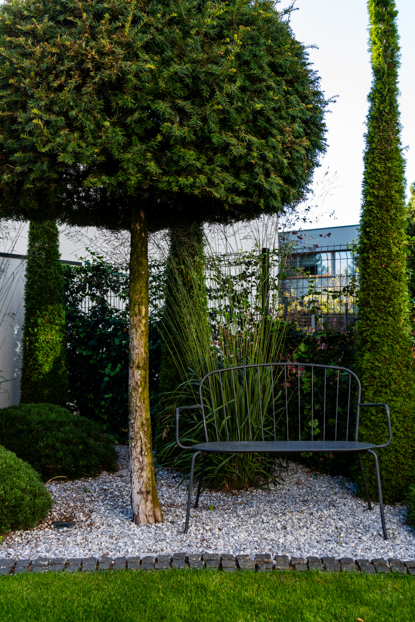 Projektas išsiskiria moderniu augalų išdėstymu, kuriame aiškios linijos ir kruopščiai parinktos rūšys kuria minimalistinę estetiką.